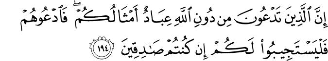 “Those you call on besides Allah are servants, just like yourselves. So call upon them and let them respond to you, if you should be truthful.”