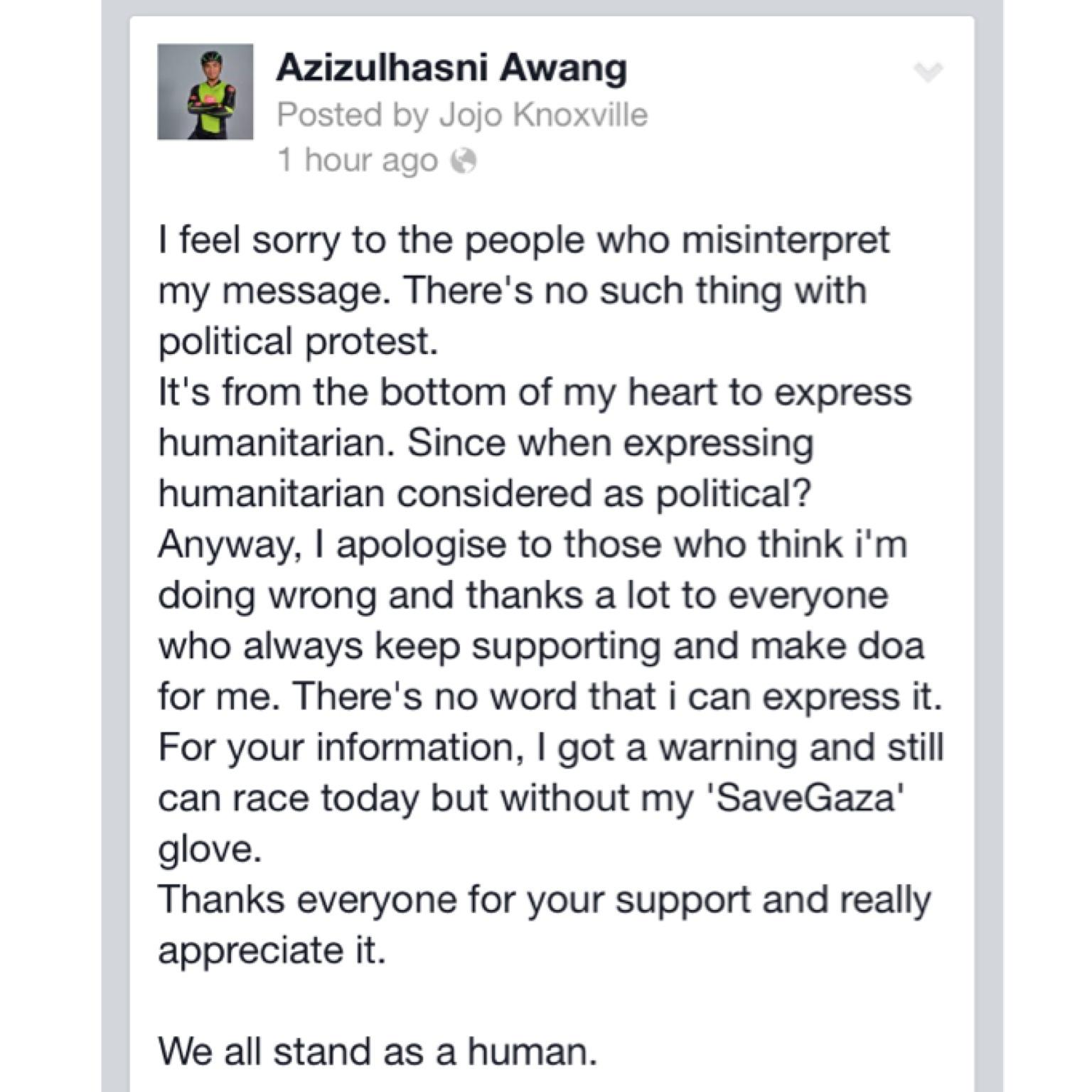 Though Awang insists his message was “humanitarian” rather than politically-charged, he issued an apology.