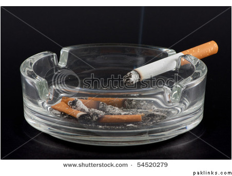 *= the cigarette burning on the ashtray at an empty bar,