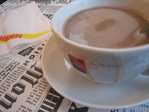 = the steaming coffee at the empty dinner table,