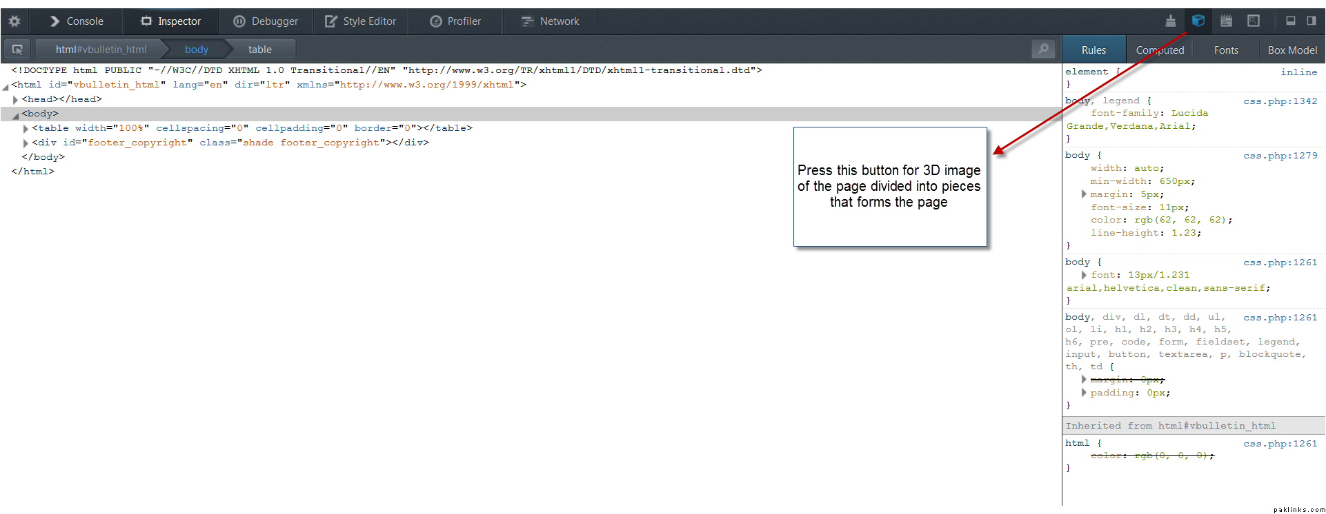 Ever wonder how your webpage works with CSS (Cascading style sheets) behind the scenes? Firefox has this amazing tool called developers tool which you can initiate by pressing CTRL+Shift+I