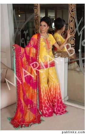 Oh wow just found out that sil saw this dress, loved it so much that took two different people with her at two different timings on the same day & ended up ordering it. Hubby told me its pink, blue with dark ruby color. Have to talk to her myself to find out what the actual shades are. All I know so far is that its unique than the regular bridals & its from Shakeel on Tariq Road. Any one here knows about this place called Shakeel on tariq Road Karachi? Any reviews about that place. I am scared & excited at the same time.