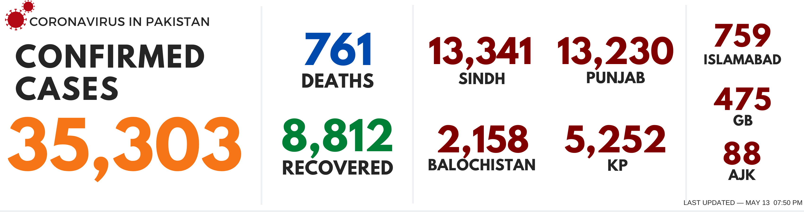 بروز پیر ملک بھر سے کورونا کے مزید 4614 کیسز اور 121 اموات سامنے آئی ہیں جن میں پنجاب سے 1537 کیسز 62 ہلاکتیں، سندھ 1776 کیسز 22 ہلاکتیں، خیبر پختونخوا سے 459 کیسز اور 32 اموات، اسلام آباد 635 کیسز 3 ہلاکتیں اور آزاد کشمیر سے 43 کیسز ایک ہلاکت، گلگت بلتستان میں 14 کیسز ایک ہلاکت اور بلوچستان سے 150 کیسز رپورٹ ہوئے۔