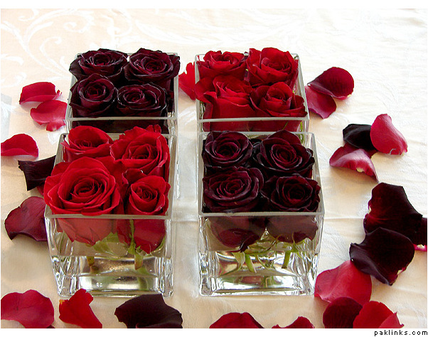 if you want to vary things, why not use the same bowl but instead of rose petals floating on top, wrap two or three red or maroon calla lilies and lily grass around the inside of the bowl and then fill it with water, and float a candle on top? that also looks very pretty. something like this… http://www.stem-florists.co.uk/Large%20Corporate%20Photos/Calla%20lily%20goldfish%20bowl.JPG