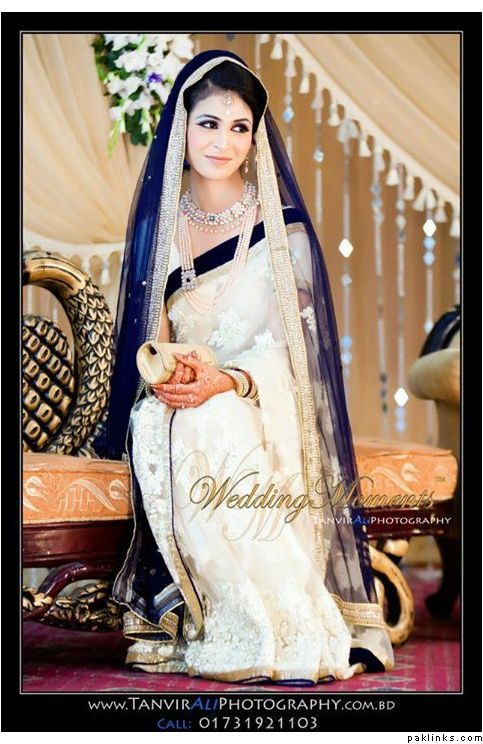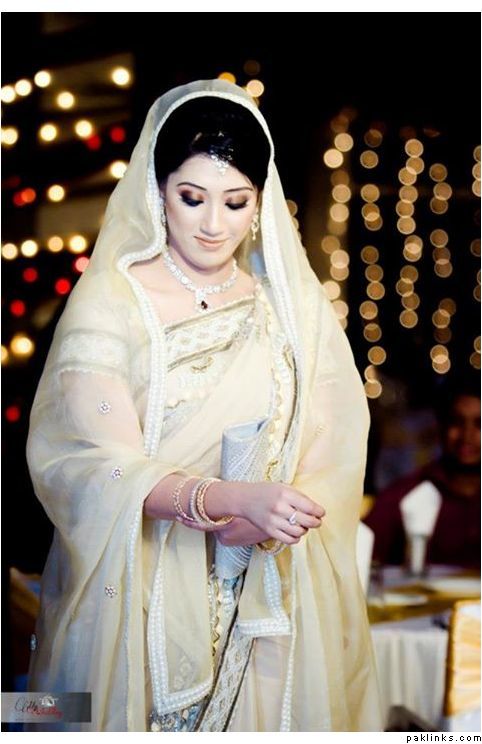 One of my cousins wore a sari for her nikkah as her family wanted that .It was a beautiful green sari.Not sure if it was the pallu or a separate duppata..she then changed into an english style white wedding dress.