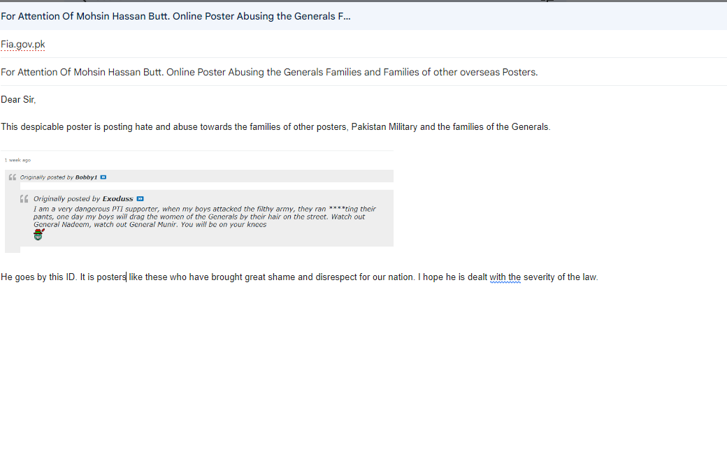 Here is a draft to an email to Mohsin Hassan. I will give you 48 hours to apologize to everyone you have abused and then hit send.