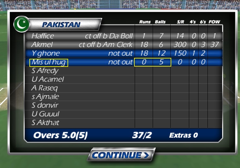 Misbah video game main bhi 5 balls pe gaya when 18 runs were required ![]()