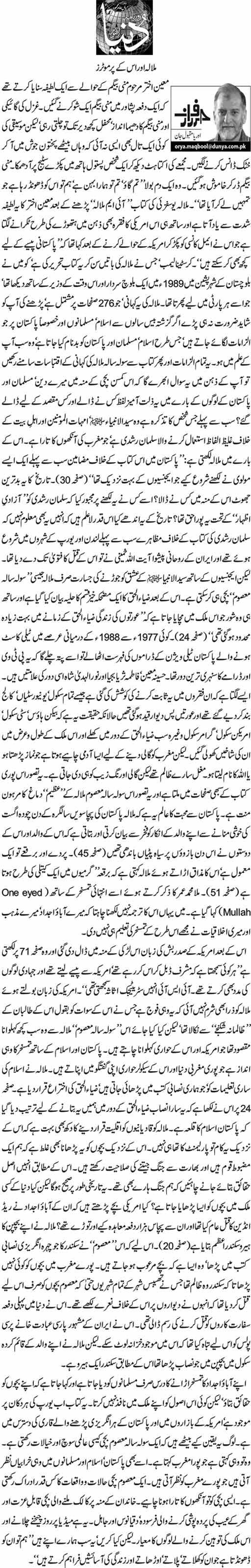 Orya Maqbool is famous as Mulla and Taliban supporter, but Ansar Abbasi also criticised the book on same basis…