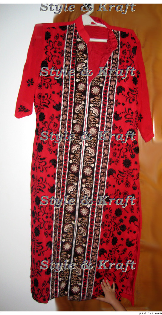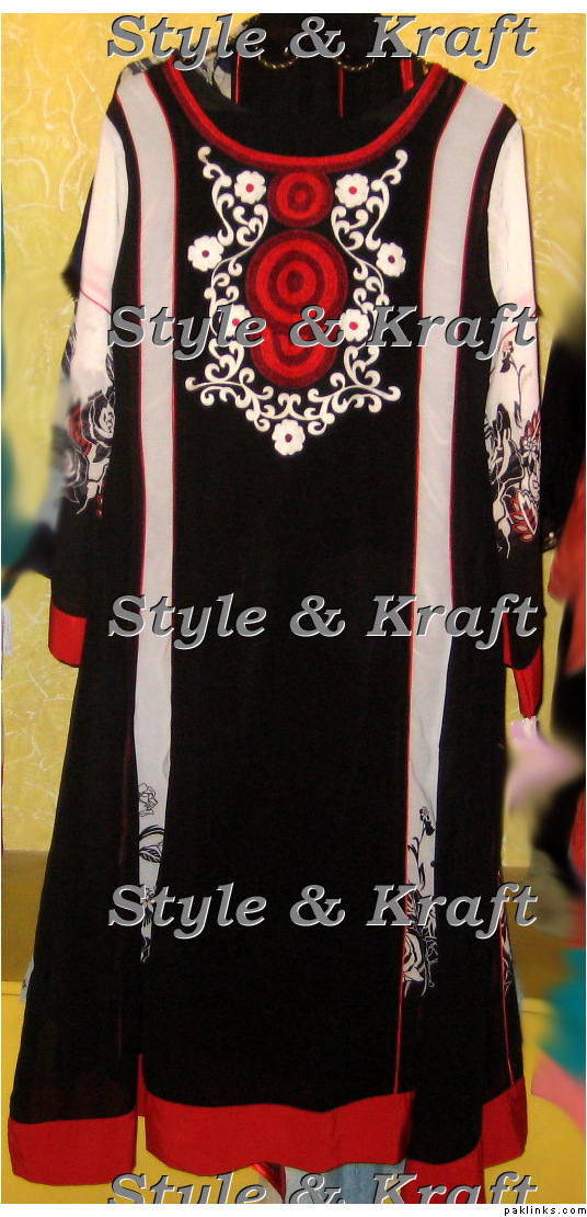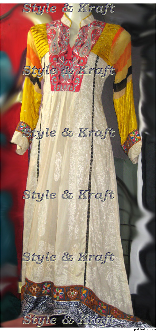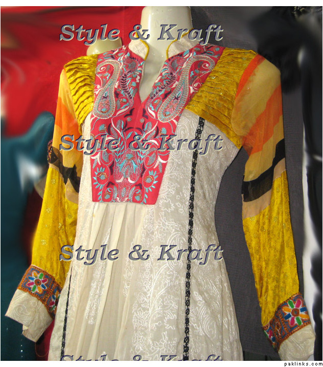 Yes I want a frock with panels of plain embroided and printed fabric in some good colour combination. How much will it cost alongwith stitching