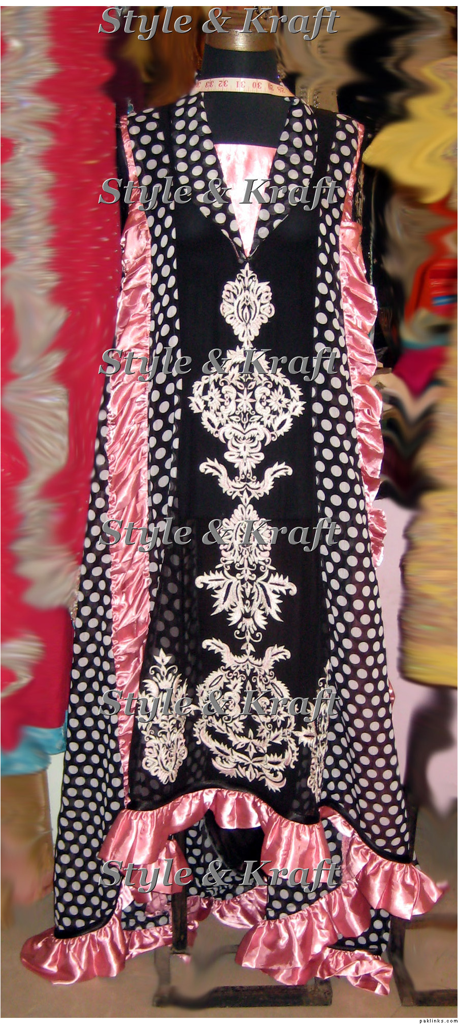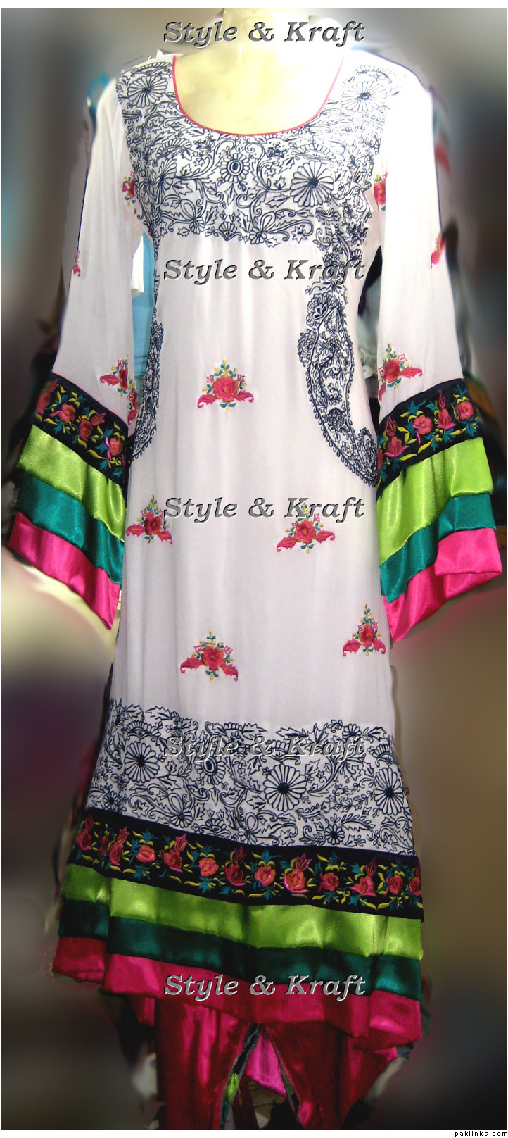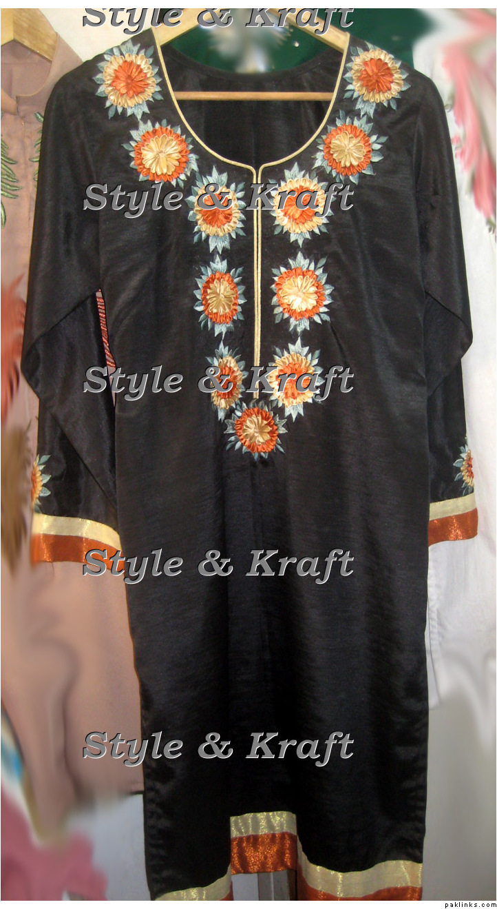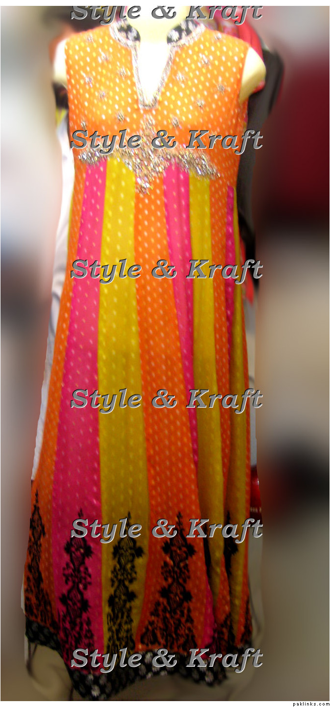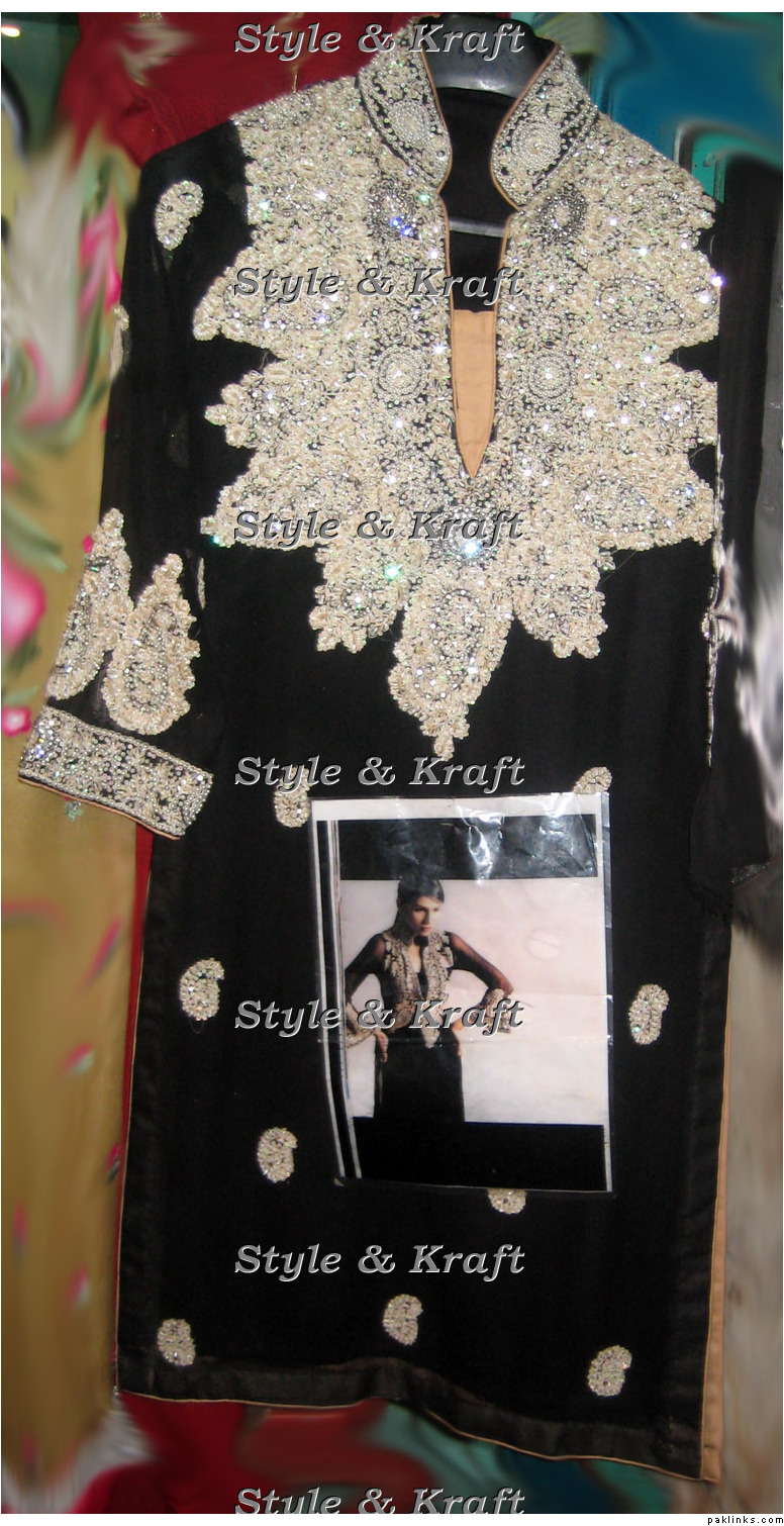The black one is PKR 11,000 on chiffon georgette, with jamavaar yoke, chiffon dupatta and raw silk pants. With handwork on the yoke. (free shipping on this one)