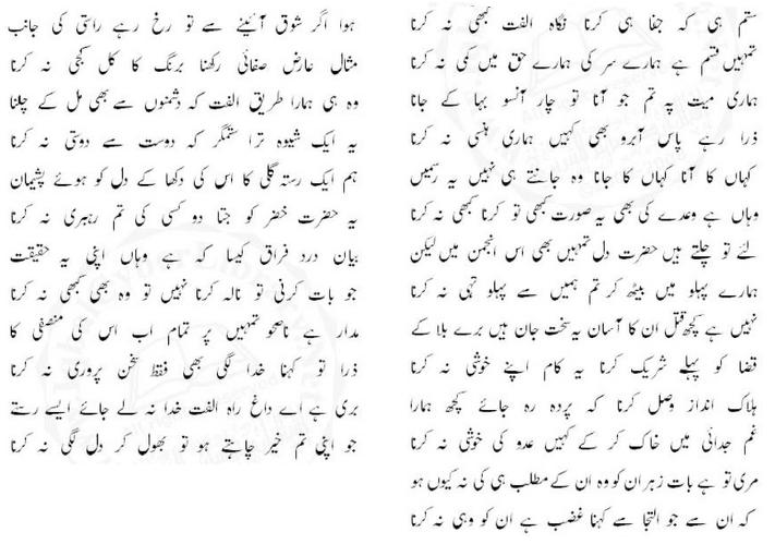 sitam hii karnaa, jafaa hii karnaa, nigaah-e-ulfat kabhii na karnaa