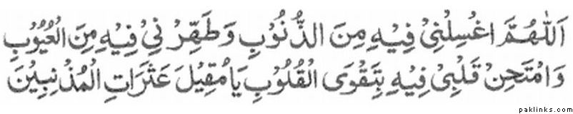 O Allah, on this day, wash away my sins, purify me from all flaws, examine my heart with (for) the piety of the hearts, O One who overlooks the shortcomings of the sinners.*