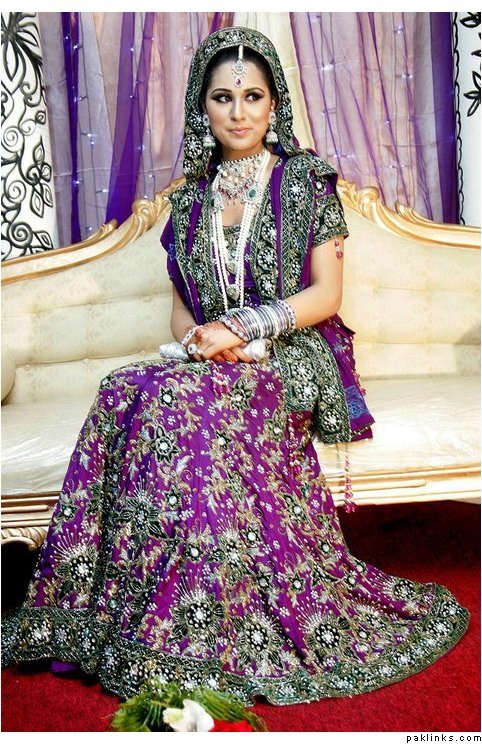Why? Red is so much prettier :S Although everyone has their own opinions on this, red is a classic bridal color. Dark purple may result in the bride not standing out as much. Regardless, why not make purple a mangni, mehndi or walima dress color? Upto you though!