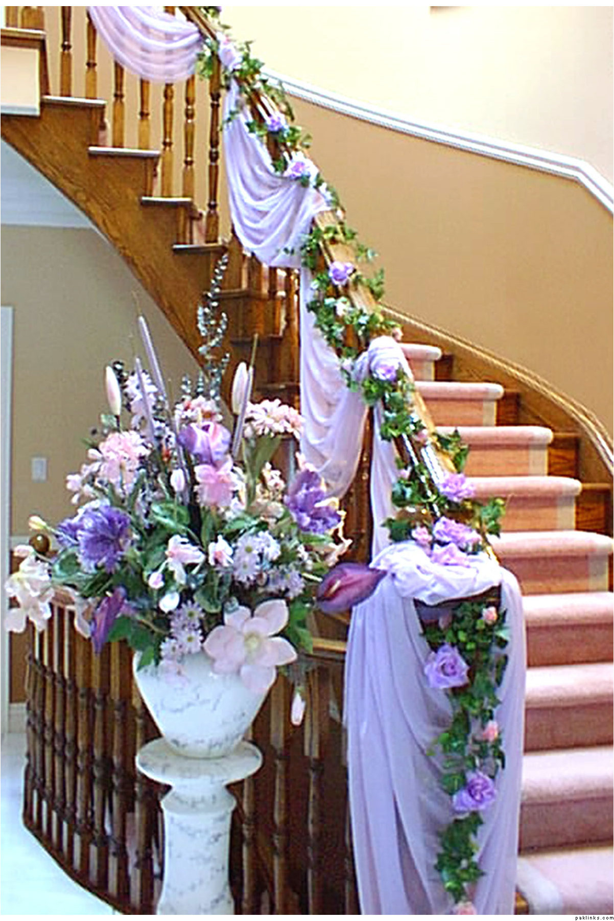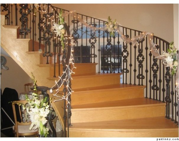 These fairy lights, gauzy fabric and little bouquets of flowers can jazz up any interior even if you don’t have a staircase. You can find great items in Pakistan as well. Gul Plaza in Karachi is full of decorative items esp. light strings, artificial flowers, cushions.