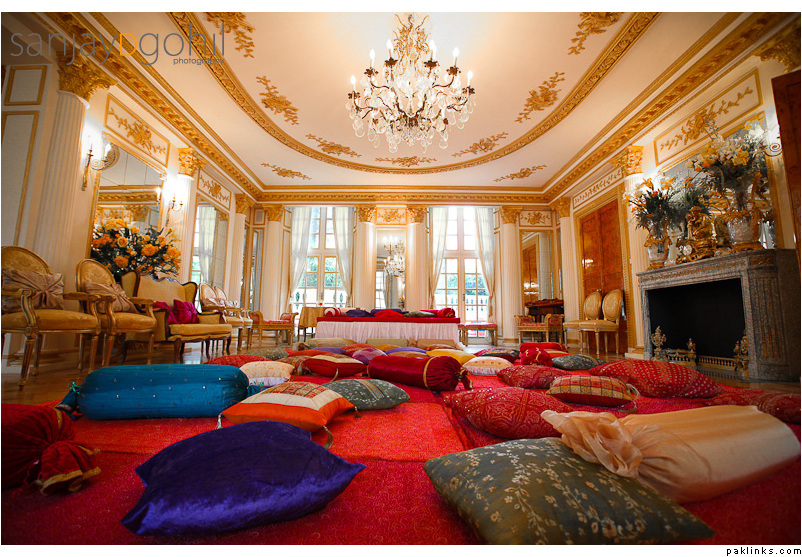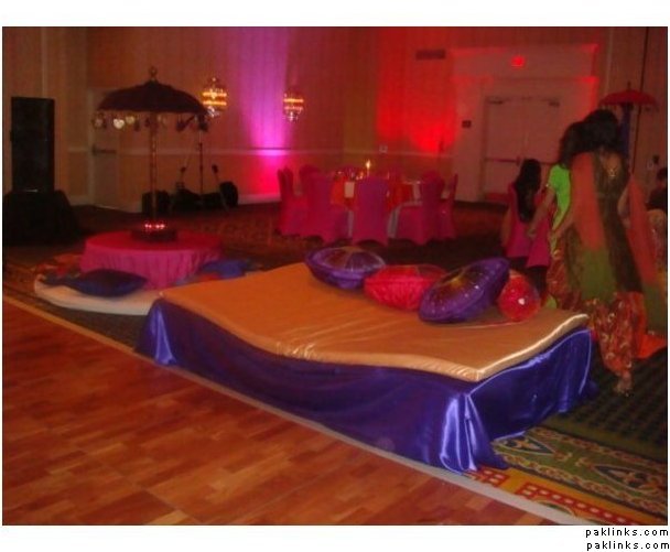 Adding cushions in bright colours and mirrored hangings can spice up the lounge and drawing room where everyone is going to sit/dance. Put some on the floor while everyone is sitting and tell someone to arrange them in threes in corners and along the walls when the dancing/chaos starts.
