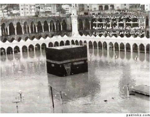 Mecca city with its Holy Kaba in the middle of the valley which is surrounded by steep hills and rocky mountains sits dangerously in low laying areas.