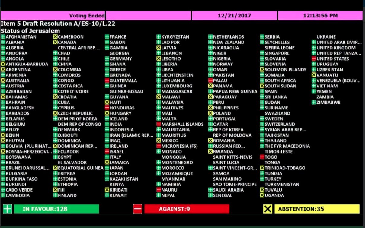 But would be interesting to see which 9 countries dared to vote No, and which 35 ones abstained. I know Canada abstained.