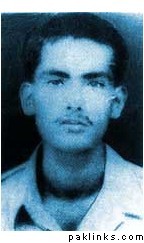 Leading Aircraftman Anwar Hussain was on duty at a vital point. His position was rocketed by enemy aircraft and the place caught fire. Anwar Hussain was the only person on duty over there. He fought the fire single-handedly with the available fire appliances and managed to control it and thus saved expensive equipment. His death is an example of courage and unfaltering devotion to duty towards the service as well as to the country. He was awarded Tumgha-i-Juraat.