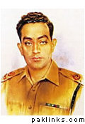 Born 1928 in Hong Kong. Commissioned into the Punjab Regiment, 1950. On 6 September 1965, as Company Commander in the Burki area of the Lahore sector, Major Bhatti chose to move with his forward platton under incessant artillery and tank attacks for five days and nights in the defence of the strategic BRB canal. Throughout, undaunted by constant fire from enemy shell arms, tanks and artillery, he organized the defence of the canal, directing his men to answer the fire until he was hit by an enemy tank shell which killed him on 10 September 1965. He was 37 years old.