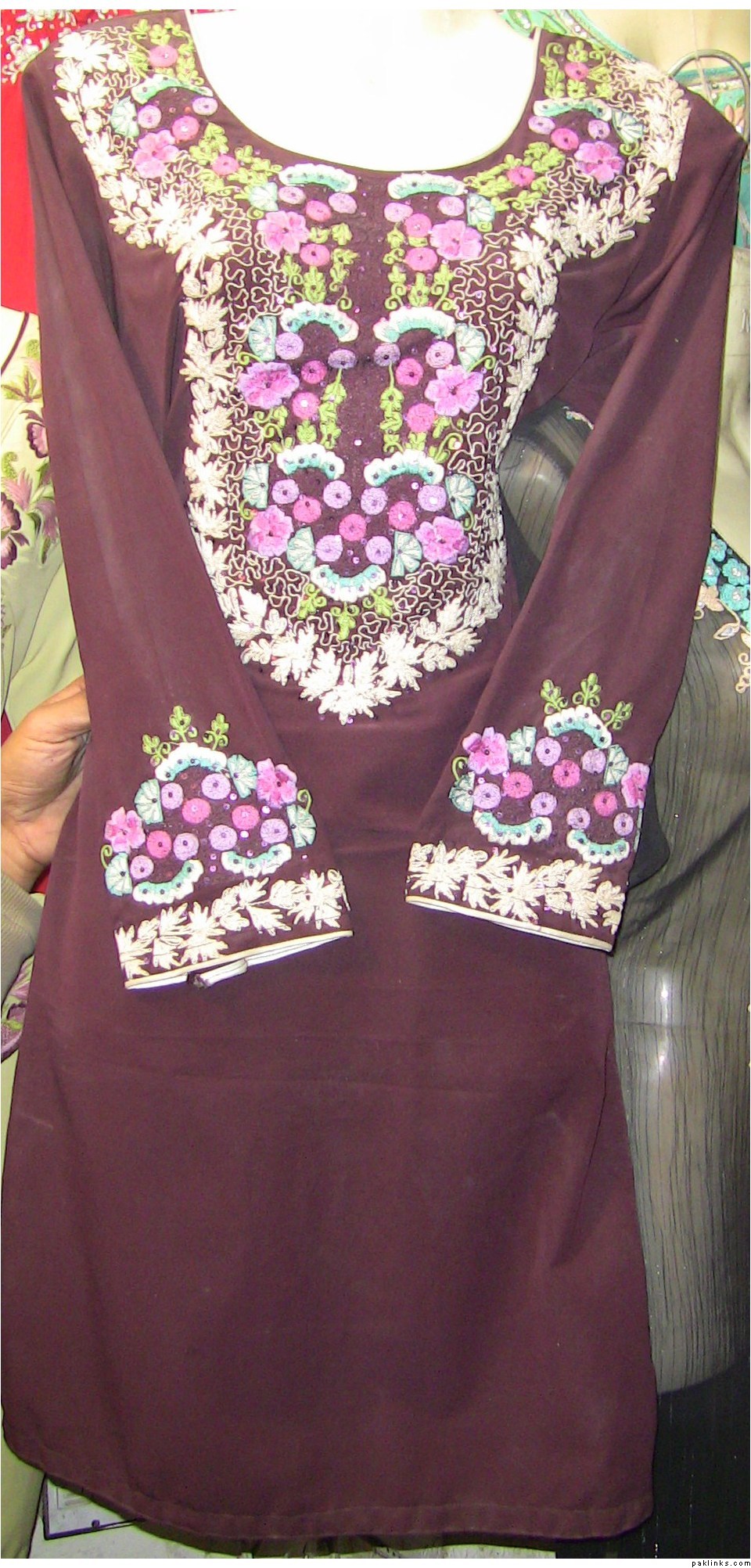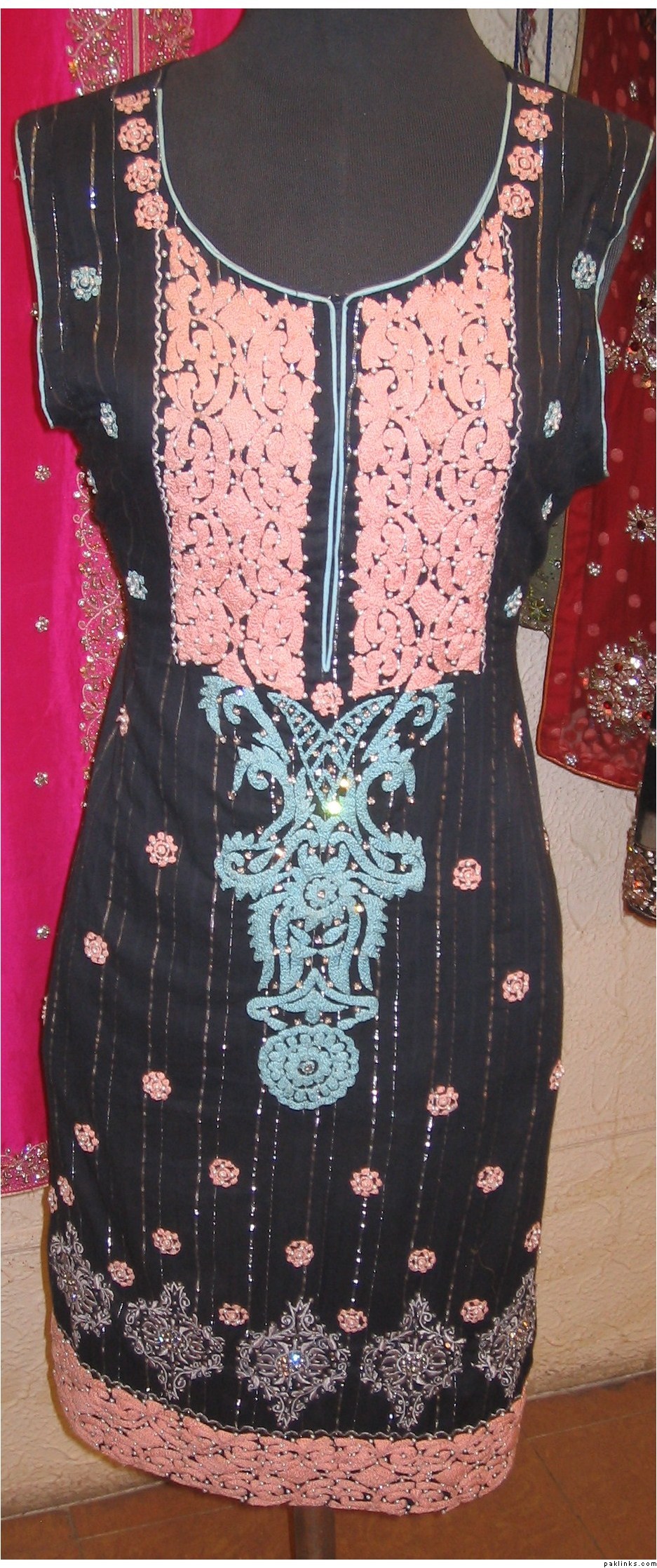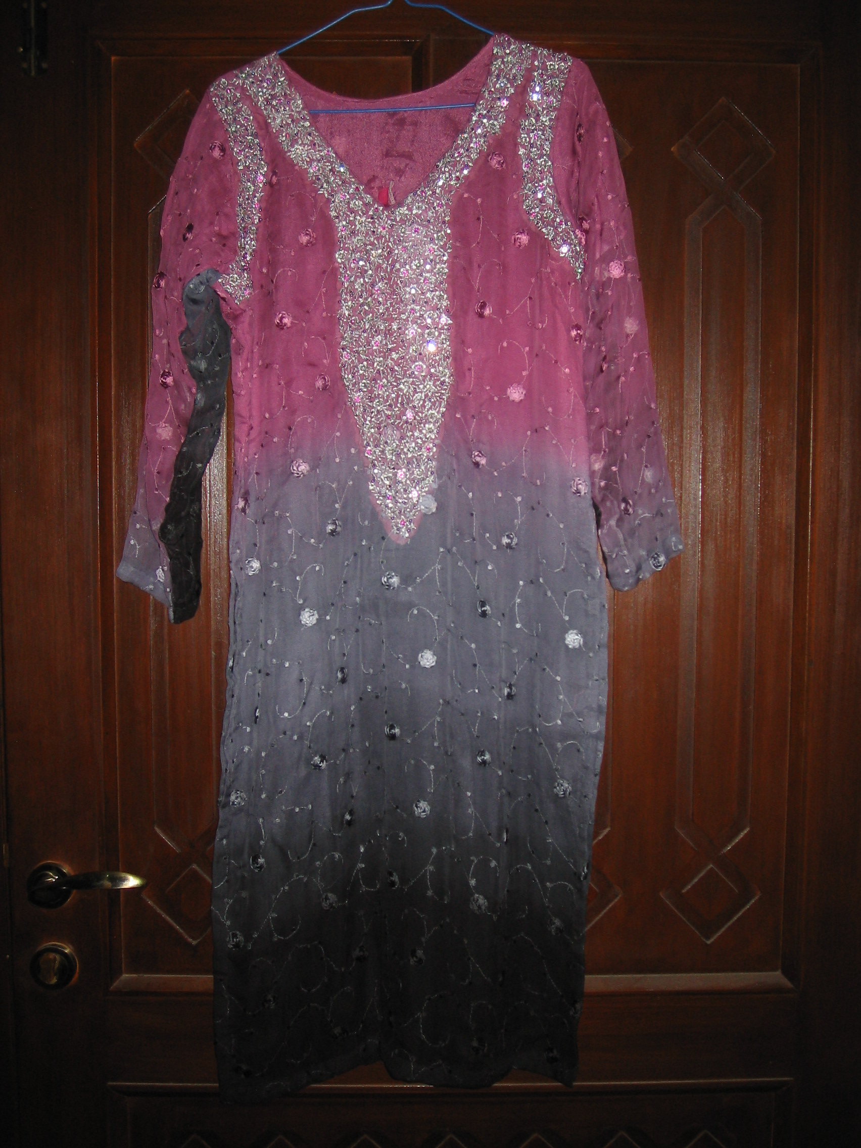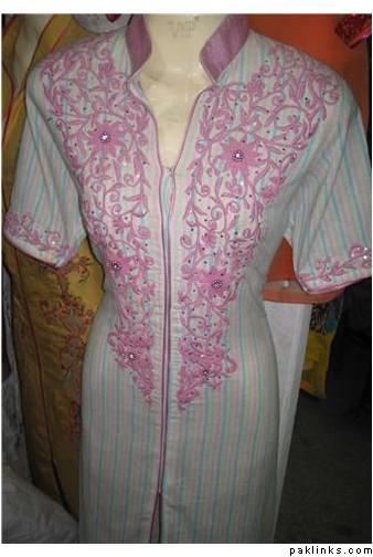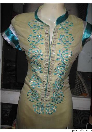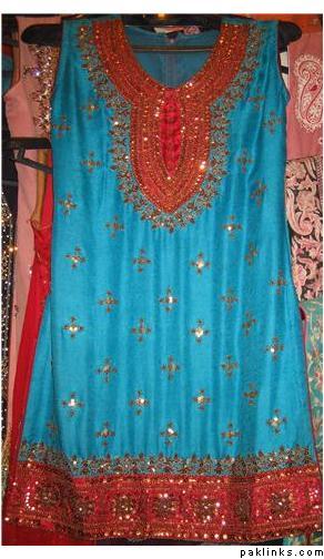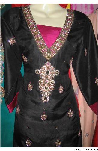 i have alot of pics on the face book. Are u talking about the dress pic on my profile ?? the black shirt with white embroidery all over it ??? That one is 8000 Rs. I use all pure fabrics but if some one wants to bring the price down by using the synthetic stuff i can do that for them as well.