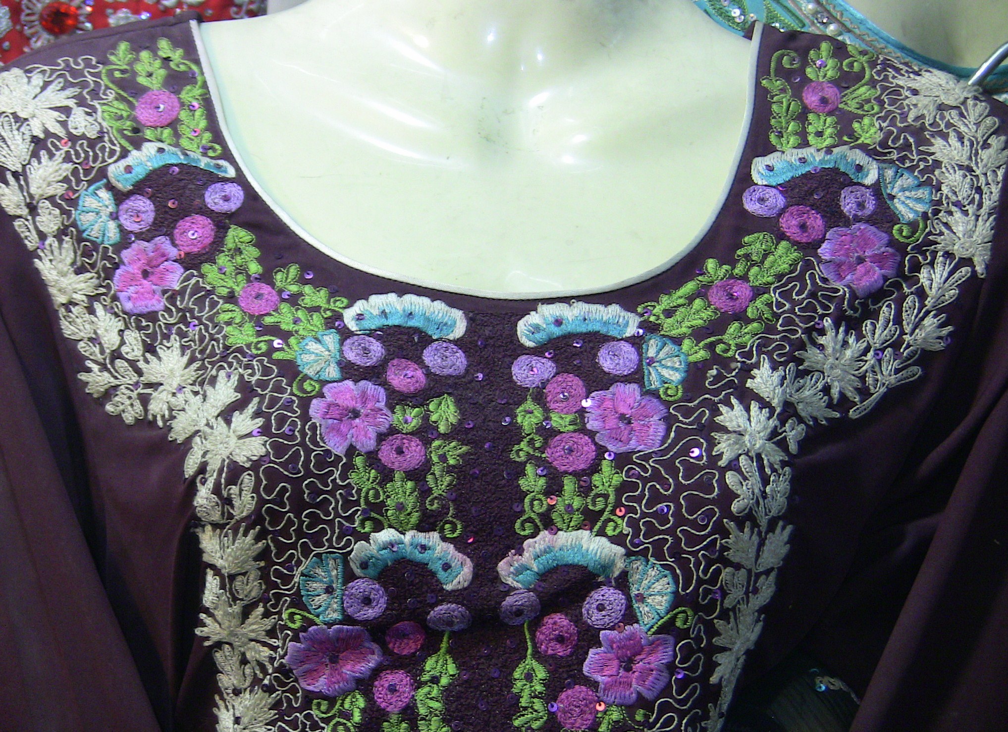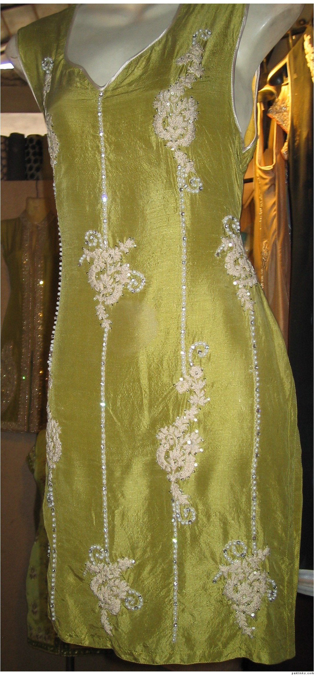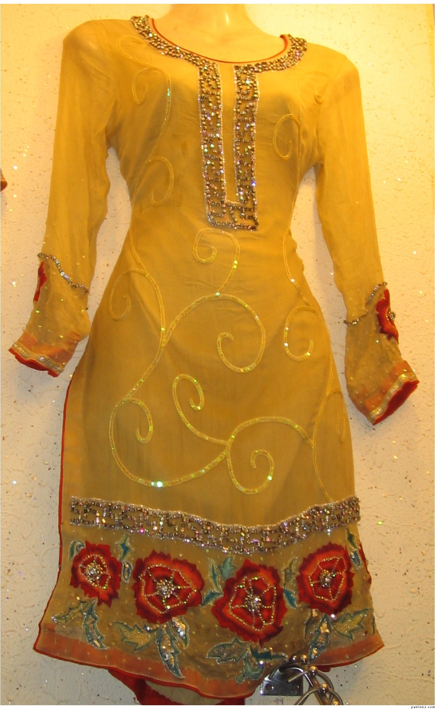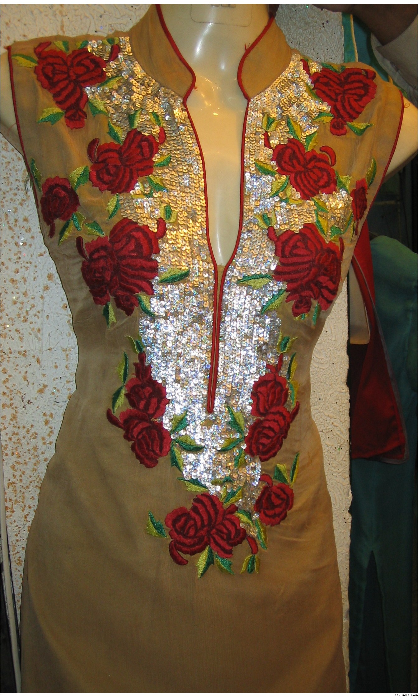 i have alot of pics on the face book. Are u talking about the dress pic on my profile ?? the black shirt with white embroidery all over it ??? That one is 8000 Rs. I use all pure fabrics but if some one wants to bring the price down by using the synthetic stuff i can do that for them as well.