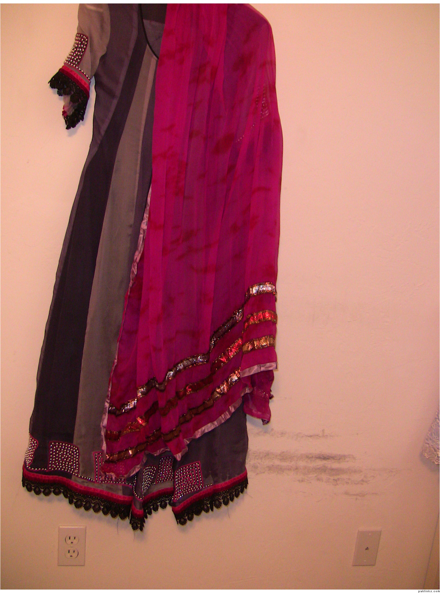 I have a panel dress to sell with dopatta and trouser. the dress and dopatta are all made in blue card chiffon and the trouser is made in raw silk. It was made for a customer but the colors were made different than she desired so I am putting it up here for any one to have it if they want.