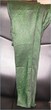 Green indian chiffon frock made in panels and adorned with embroidered and weaved laces .