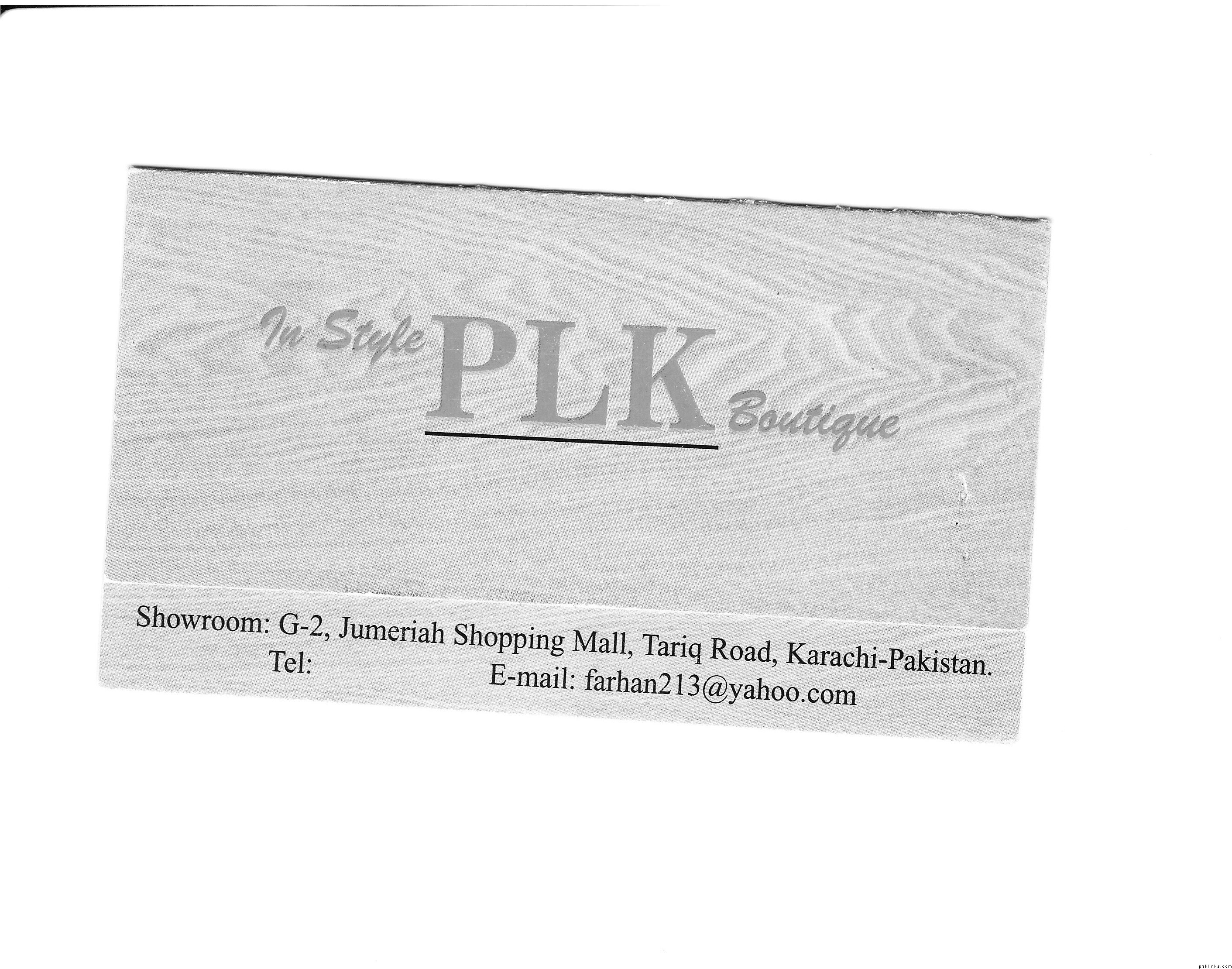 You can also order formals from PLK, Tariq Road. I gave them my own fabric and they did the kaam. Again the quality of the work was really fine and I was happy with the result. They have loads of samples and you have to keep looking at the outfits to sort out the kaam you like. They also provides matching shoes and pouches/bags alongwith their bridals. I didn't ask whether they do that with their formals. You can also show them your design and they will make it as it is. BTW, their formals start from Rs. 10,000. Negotiate and bargain all you can. Ask for Farhan if you want to order.