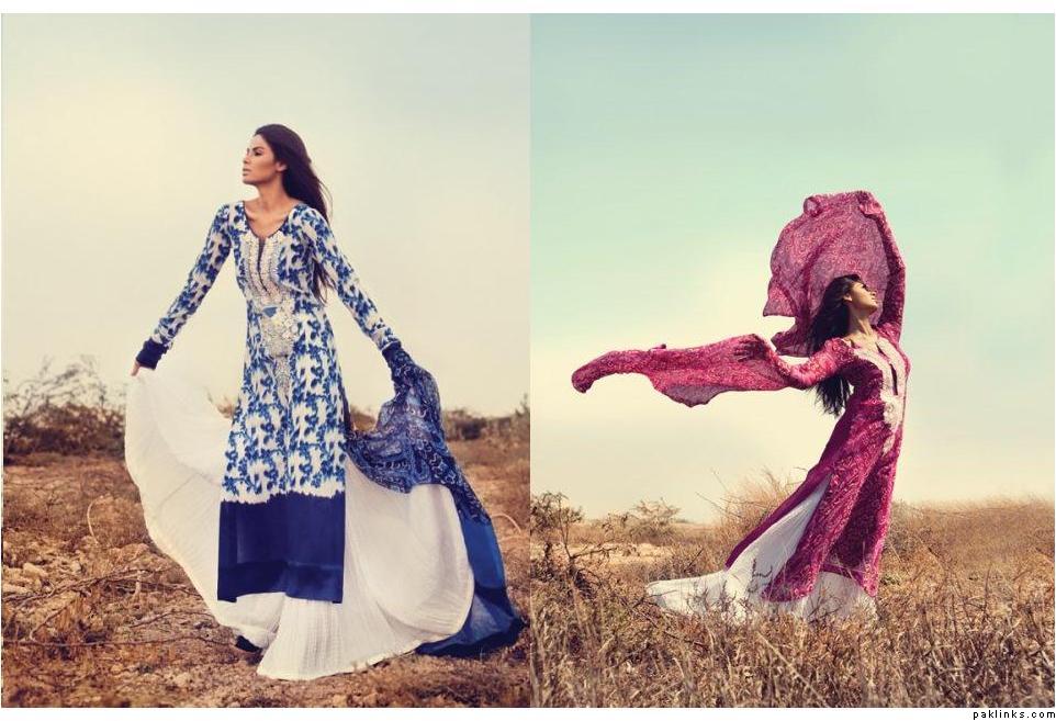 It’s lawn season and the most hotly anticipated collection every year goes on sale tomorrow in Karachi, Lahore and Faisalabad simultaneously. Sane Safinaz do lawn collections regularly for Pakistan’s unforgiving summer and this year they bring on their signature pastels, get into brighter colours and go all the way to black tore more formal evening look. Its a traditional three piece suit, but put together in true Sana Safinaz style, with lawn for the kameez, a pure chiffon dupatta and cotton as the fabric of choice for the shalwar. And this season, some suits have three and a half metres for the shirt - a full metre more than the norm - so women can get those hugely fashionable flared kameezes tailored. All pieces have embroidery incorporated on them, some have a satin daaman, all to add value and chutzpah to basic lawn, elevating it to style statement. It’s these flourishes that have women thronging Sana Safinaz lawn exhibitions year after year.