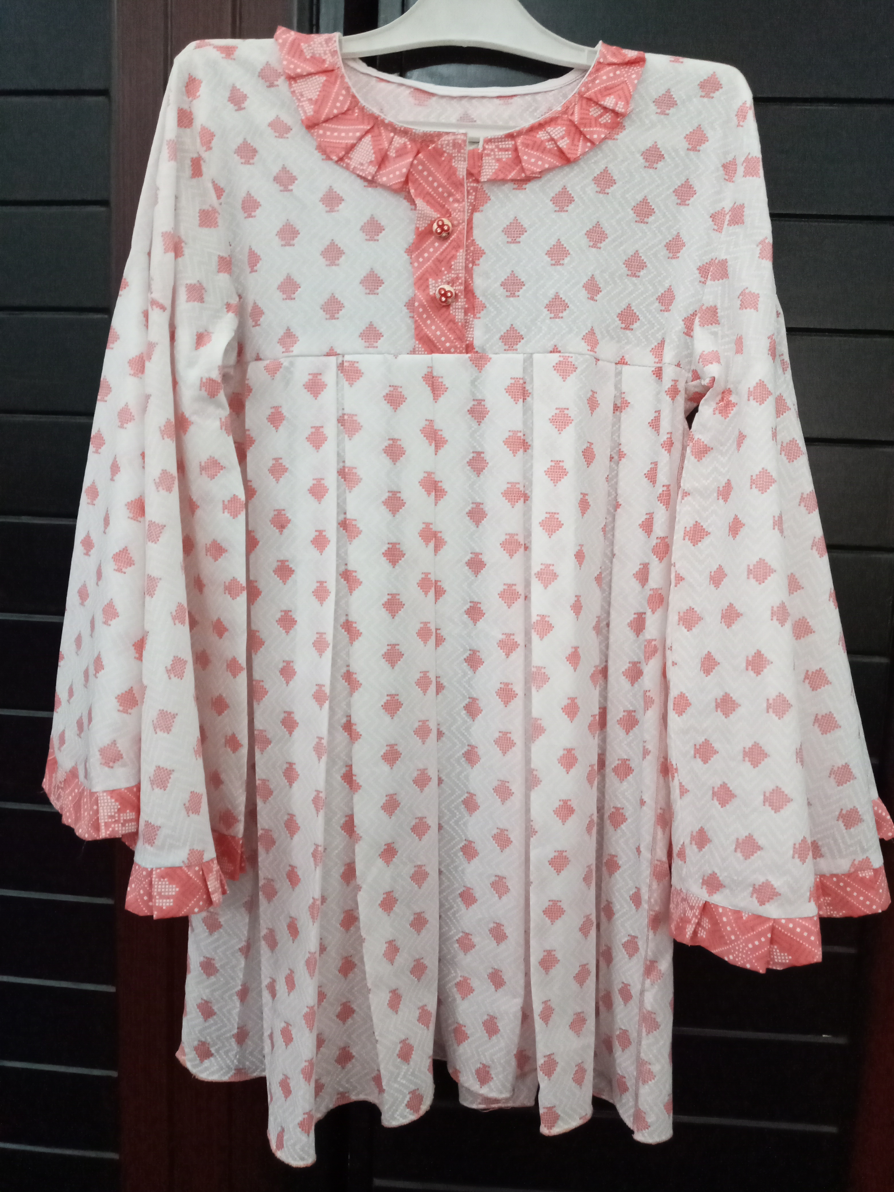 Description: Box Pleated Top With Full Circular Sleeves
