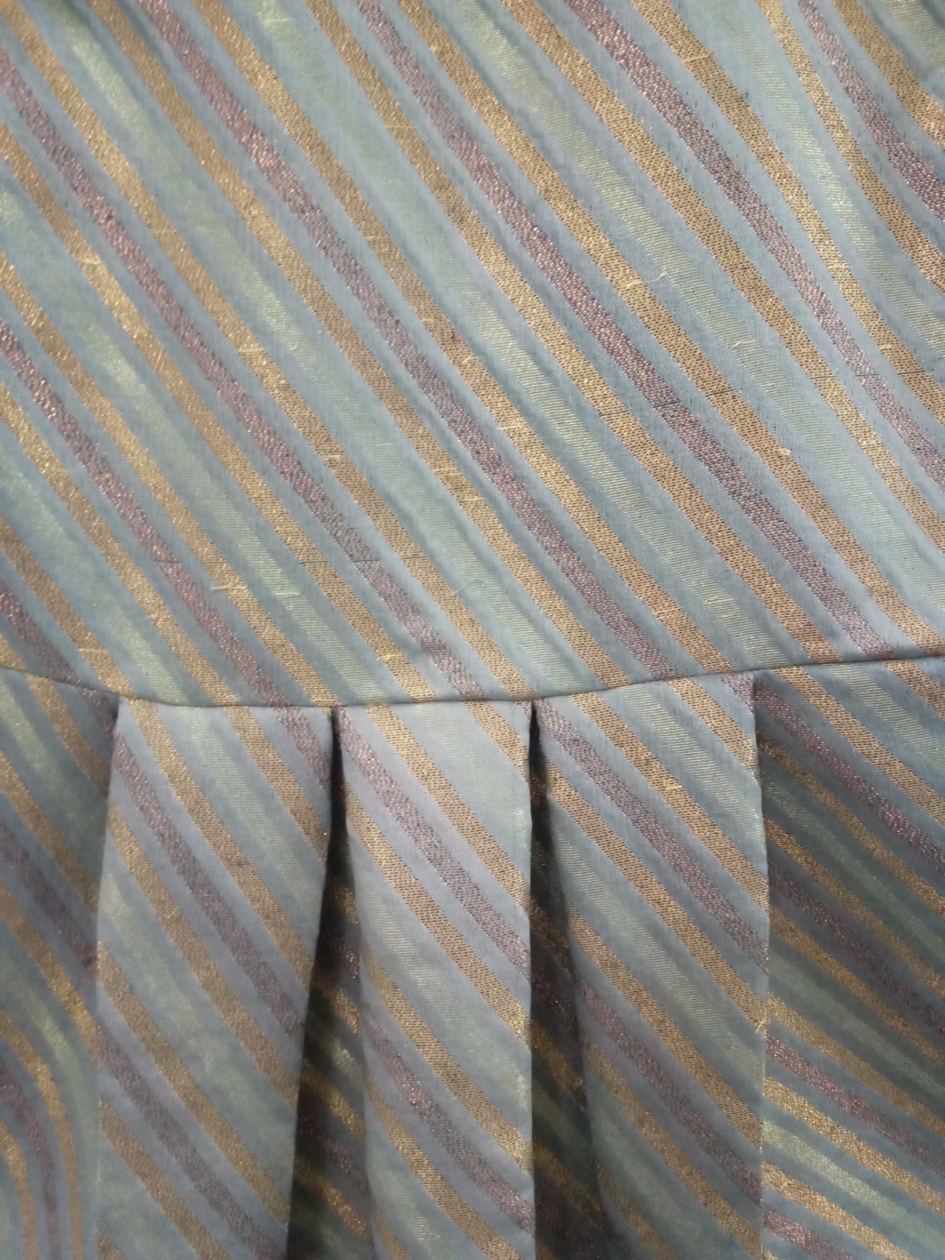 Dull Silver Stripped Pleated Top Decorated With Copper Lace