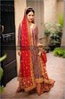 Silver grey shirt with red dhaka pajama and red dupatta with purple velvet patti on the four sides of dupatta and shirt daaman