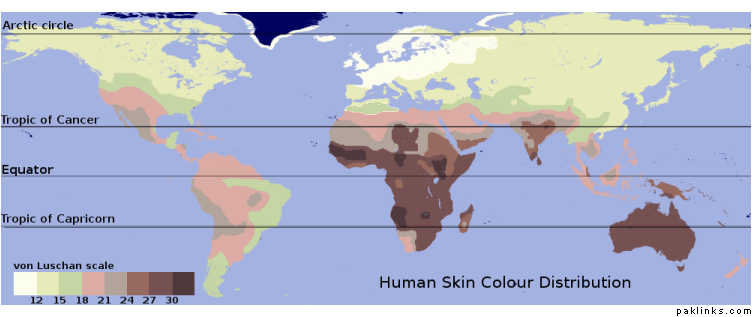 Here is a Map showing the various skin tones of the world…