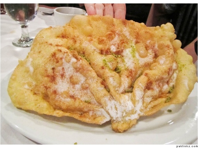 Gosh-e-feel (“elephants’ ears”) – Thin pastries which are fried and dusted with sugar, cardamom and ground pistachios.