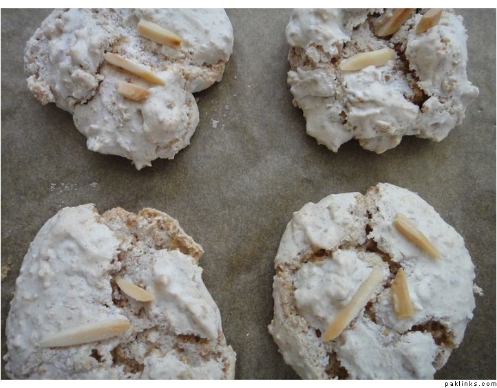 Kulche Badami – Almond biscuits with a cracked surface, which are crunchy on the outside but chewy on the inside, a bit like a meringue.