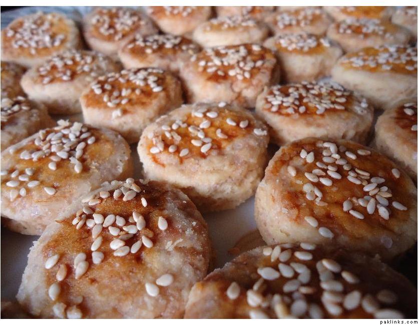 I think I should mention here two traditional sweets that my grandmother used to make. One was “Kulcha.” Kulcha is better known as a fluffy savory bread but the one I’m referring to here is a baked cookie with sesame seeds and saffron infused syrup that’d give the cookies their distinctive orange hue.