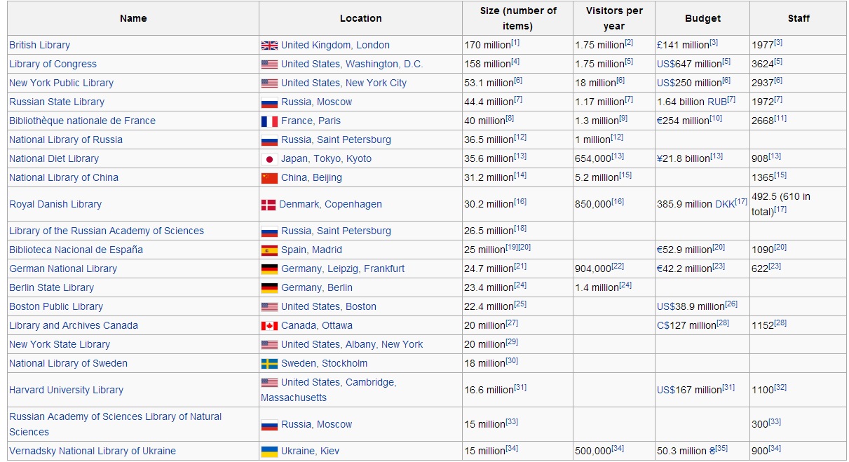 Here is list of 20 largest libraries in the world.
