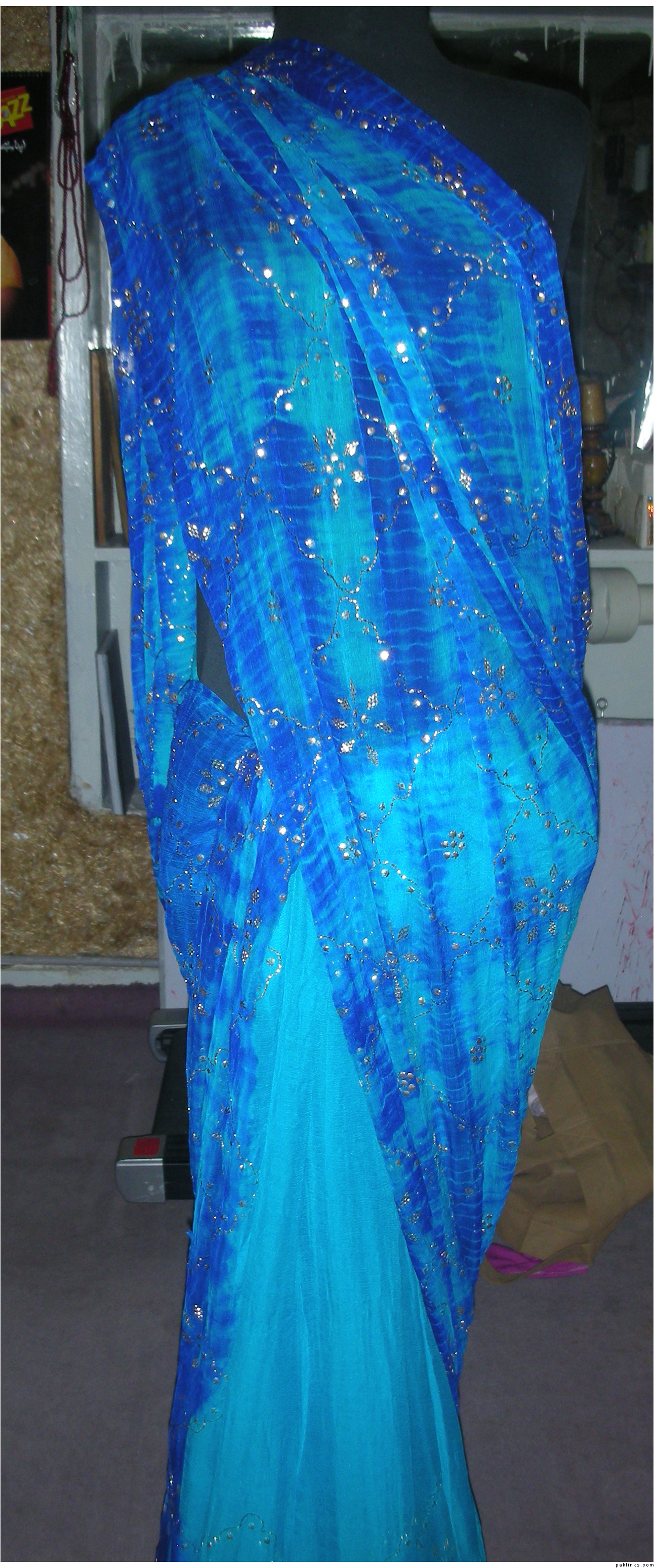 USD$45 pure crinkle chiffon shirt & dupatta with bead work & grip shalwar