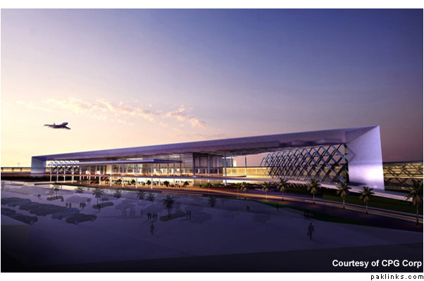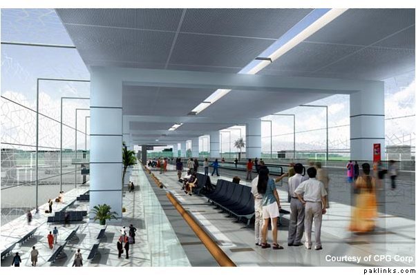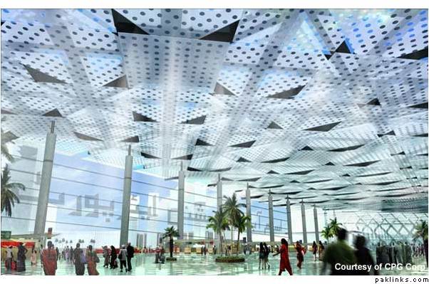 The design of the new terminal building will be an architecturally significant one for Pakistan producing a national icon for the country. The design will also be sustainable and environmentally sound with use of natural daylight for main lighting and sun shading to cut cooling costs as well as an intelligent main roof (water conservation) and an elongated driveway length front portal (better views and more light).