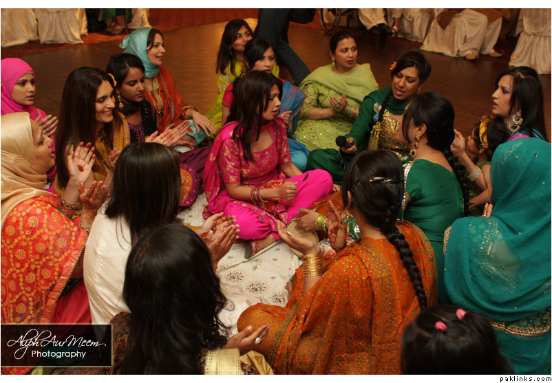 I would do some dholak and songs for a bit, have the ladies feed the bride some mithai, do your games but dont do too many of them, put on some dance music and let the ladies/girls just dance! As a bride, thats all I wanted to do, LOL.