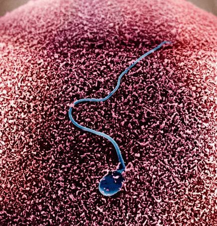 For the first time, scientists have successfully plotted the paths of sperm in 3-D, revealing corkscrew-like trajectories and “hyperactive” swimmers. A human sperm encounters an egg, seen via electron microscope.
