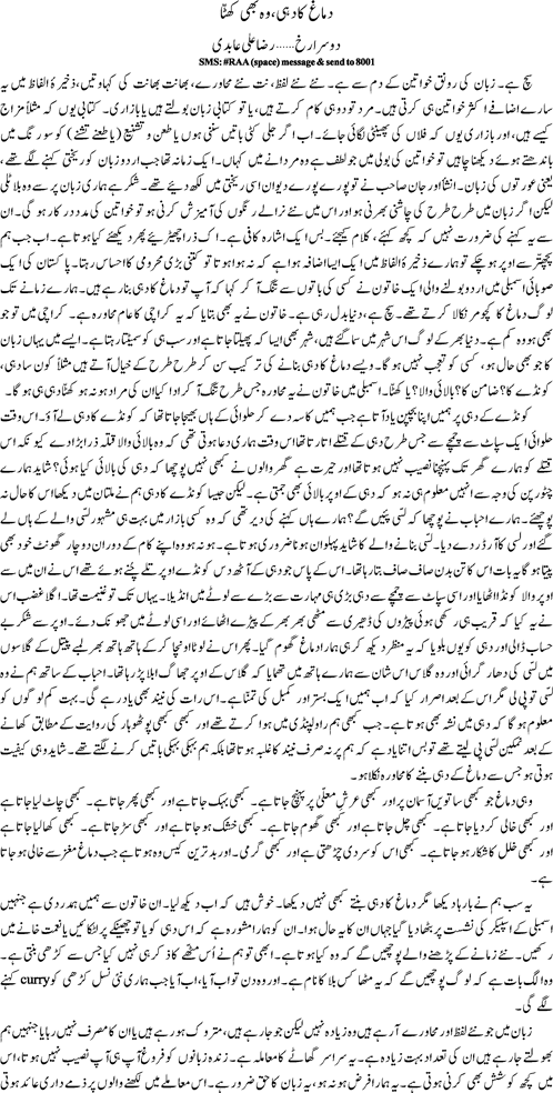 Raza Ali Abadi - dosra rukh - dimagh ka dahi aor who bhi khatta - Jang Columns