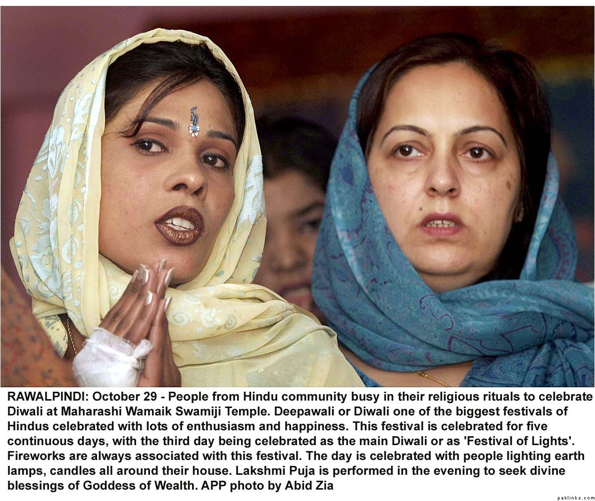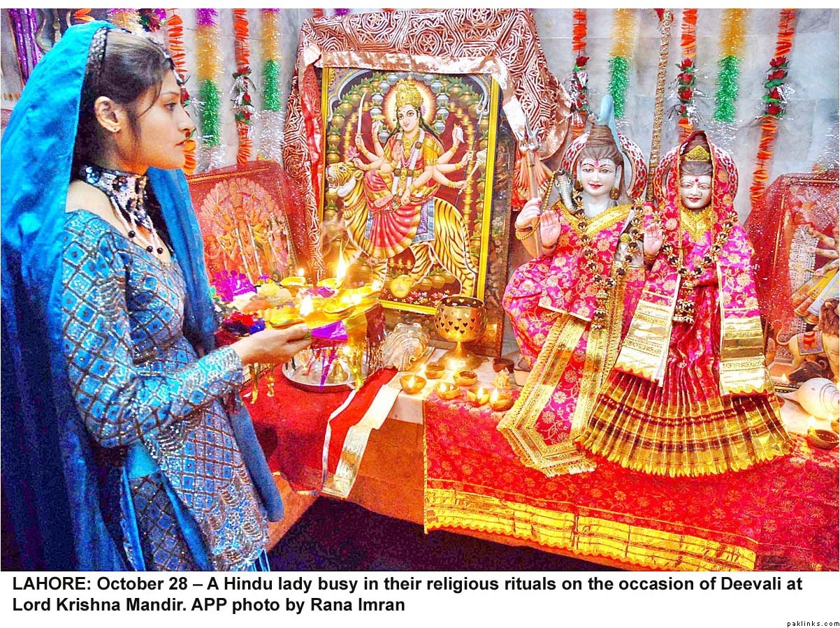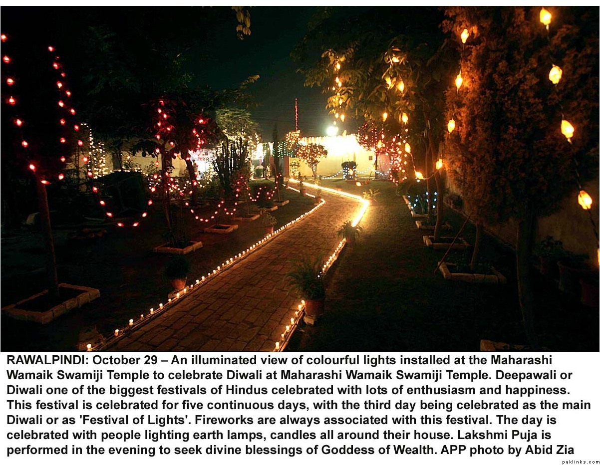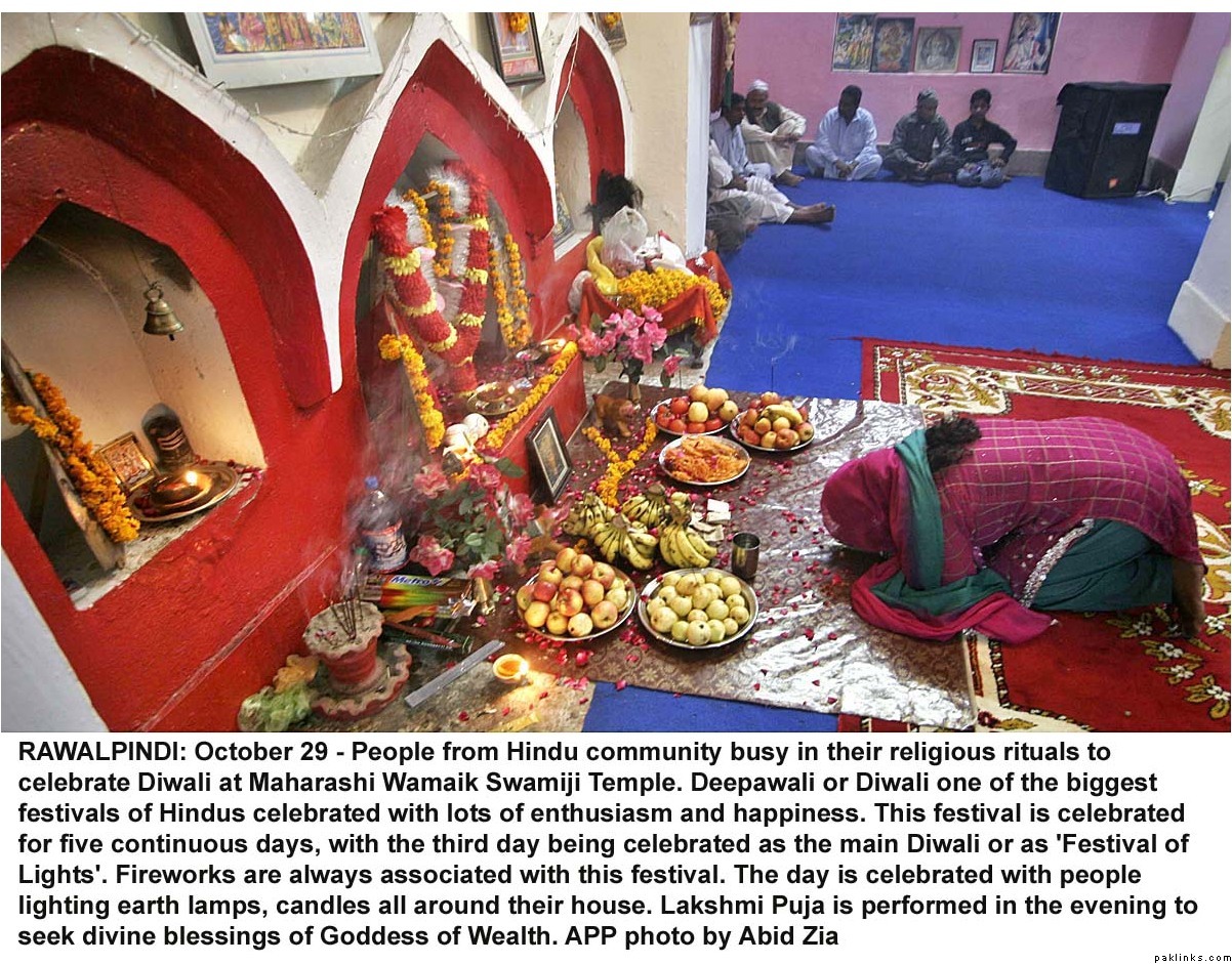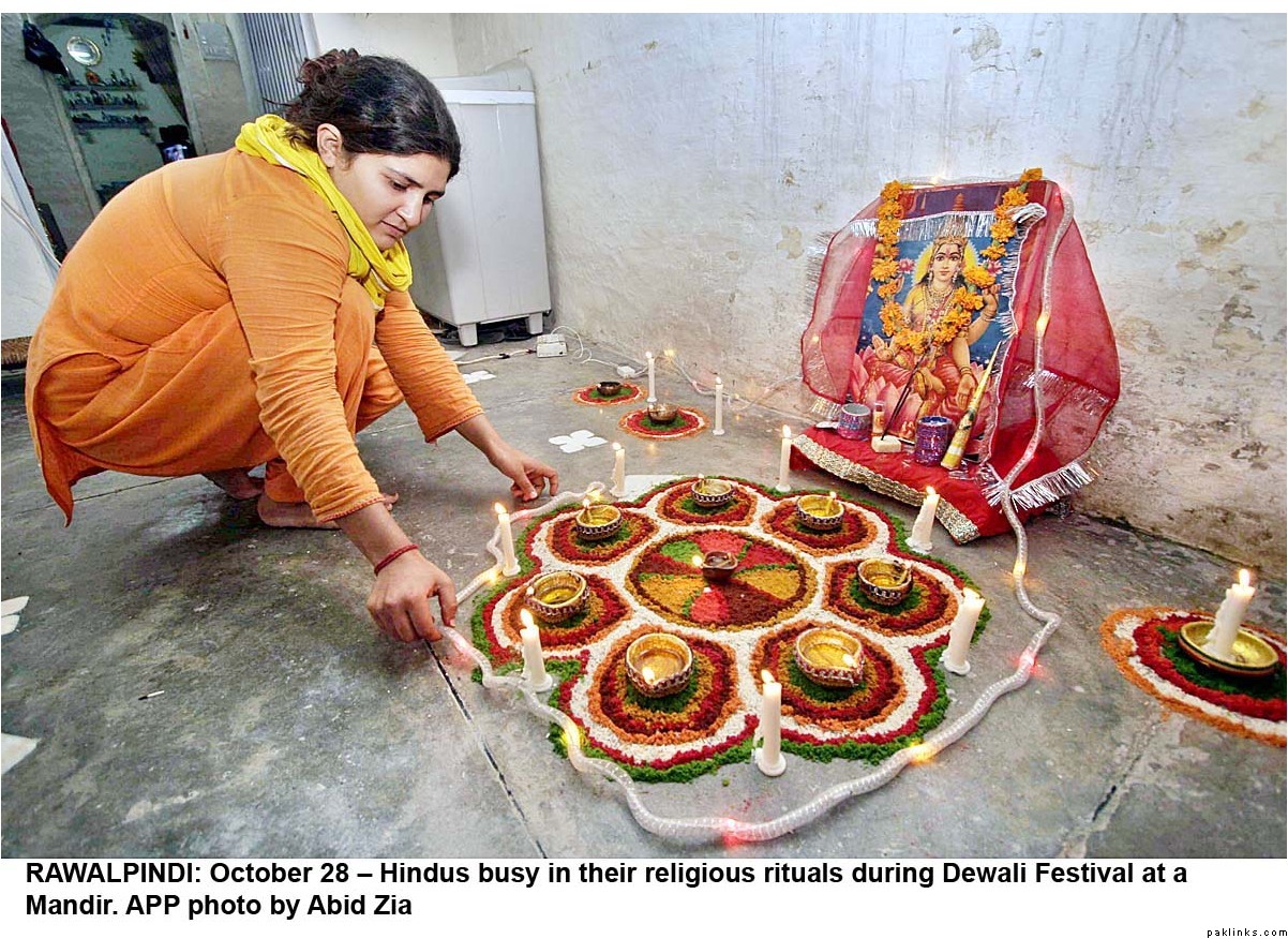 Diwali was celeberated with religious fervor all across Pakistan. Hindus lit lamps and prayed in many mandirs all over the country. Hindus make up 1.5%(approx. 2.5 million/official figures) of the Pakistani population(most of them live in Sind) and enjoy full religious freedom of expression. For the last few years Pakistani minorities are better represented in the main stream and among the Pakistani media, thanks to the government efforts. Pakistani Hindus can participate in joint electorate and have their seperate desiganted seats in parliament to elect their own leaders.