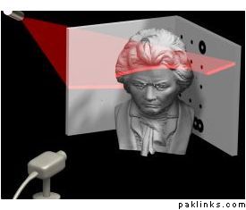DAVID is a freeware software for laser range scanning. All you need is a PC, a camera (e.g. a webcam), a background corner, and a laser which projects a line onto the object you want to scan. So everyone can use it to scan objects without high costs; this is the big advantage over commercial solutions which are rather expensive.