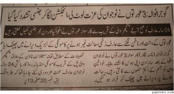 OMG at that urdu newsclipping!! That is gross, eww and kind of funny at the same time!!! 3 women raped the guy after kidnapping him and then injected him? ![]()