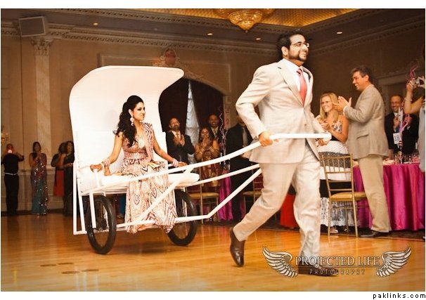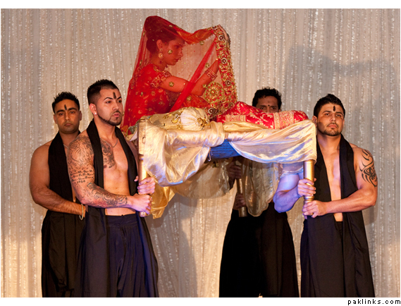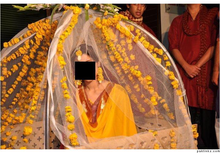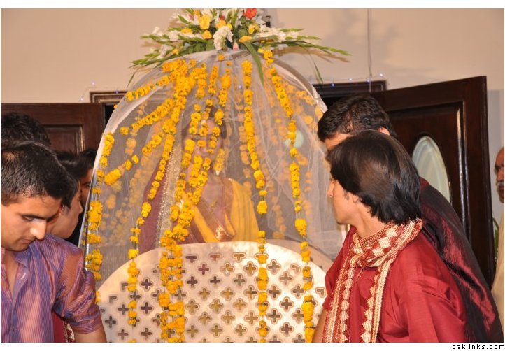 My sister in law who got married in Karachi recently enetred the wedding hall in a doli. When she reached the stage, the bridegroom got her out. The doli was very heavy, not made of wood. my husband and other cousins were struggling with it.
