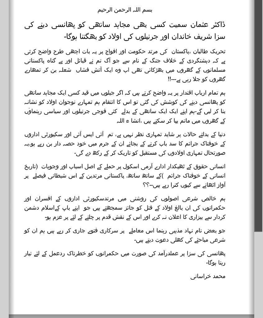 Here is the threatening message by TTP people for executions. And you can clearly see how they keep accepting and reasoning the killing of poor kids. A slap on their sympathisers: