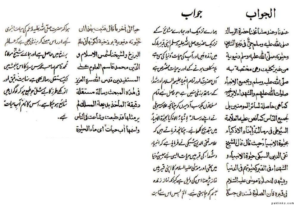 many posters have already explained it, with all the references. however, im posting excerpts from “Al-Muhannad A’la Mufannad” explaining aqeeda ahl-e-sunnat-wal-jama’at, to summarize the whole thread. though the language used is a bit difficult, not very easy for people like us, but at the same time, i believe that correct terms and sentences are needed to correctly explain the exact belief.