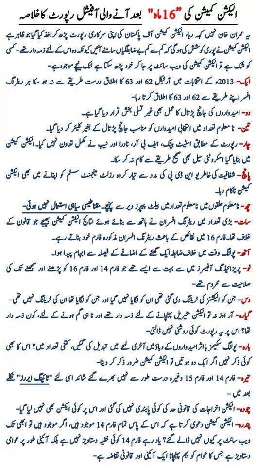 And the ECP is right this is a short report. Normally from my experience the final report is a 3 or 4 volume book covering data, voting patterns and much more. I did my part with the IEC in Afghanistan, so this should not be seen as the sole report on the elections.
