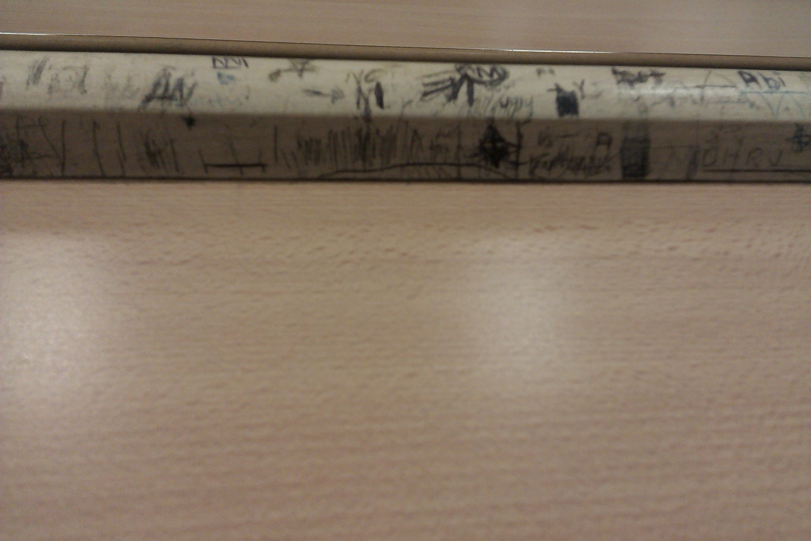 I dislike it drawing , writing everywhere. For example, during lecture you should concentrate on lecture rather making clean tables, benches dirty with your so called art.